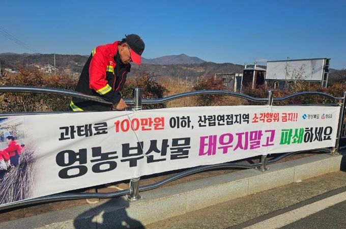 지난 4월 1일 건조한 기후와 강풍 등으로 산불확산에 취약한 상황을 반영한 “산불예방 행위제한 행정명령” 발령에 따라 산불예방을 위해 주요 등산로에 입산 통제 현수막 및 청도군 주요 지역에 산불 관련 처벌 및 과태료 안내 현수막을 설치하여 지역 주민 및 청도를 찾는 관광객 등에게 산불의 경각심을 높이고 있다.