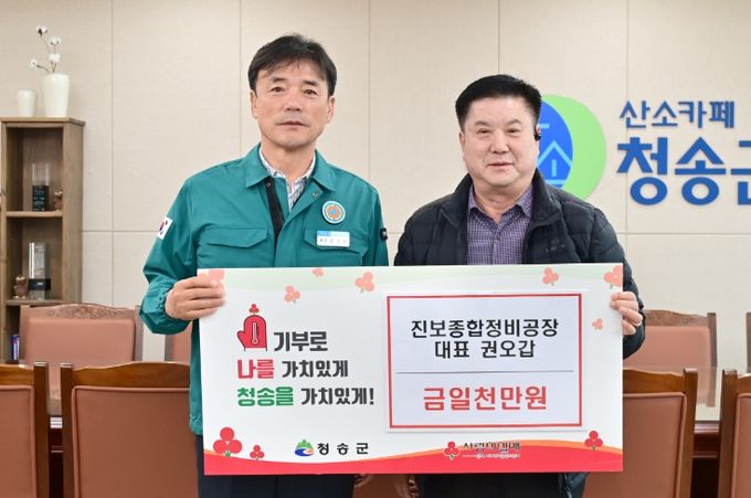[경남도민뉴스=장강동 기자] 청송군은 지난 1일, 진보종합정비공장(대표 권오갑)이 산불 피해 복구를 위해 성금 1천만 원을 기탁했다고 밝혔다.