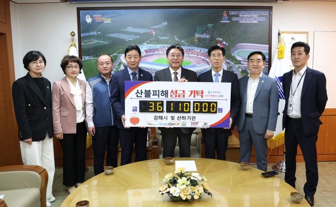 3월 31일부터 4월 4일까지 일주일간 진행된 이번 성금 모금에는 시청 직원 및 시의회, 김해시도시개발공사, 김해시문화관광재단, 김해시복지재단, 김해연구원, 김해의생명산업진흥원이 자발적으로 참여했으며 경남사회복지공동모금회를 통해 영남지역 산불피해 복구 및 이재민 지원을 위해 기탁할 예정이다.