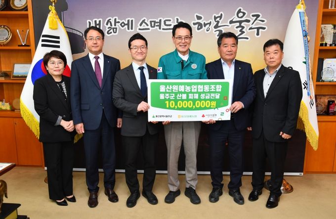 이순걸 군수는 “산불로 피해를 입은 주민들을 돕기 위해 성금을 전달해주신 울산 원예농업협동조합 임직원 여러분께 감사드린다”며 “따뜻한 마음을 담아 도움의 손길이 필요한 곳에 성금을 잘 전달하겠다”고 말했다.