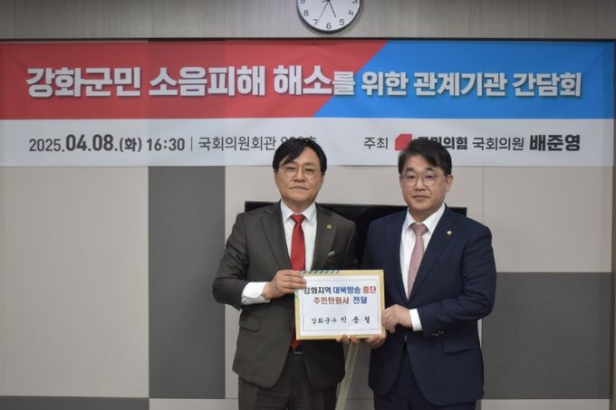 박용철 군수는 “강화군민들은 수십 년간 안보 최전선에서 강한 애국심과 국가안보에 대한 책임감을 가지고 묵묵히 견뎌 왔다”며 “하지만 북한의 대남방송으로 인해 일상이 무너지고 생존 자체가 위협받고 있다”고 말했다. 이어 “국가안보를 위한 희생은 특정 지역에만 전가되어서는 안 되며, 이제는 정부가 전향적인 자세로 주민들의 마지막 호소에 응답해야 한다”고 강조했다.