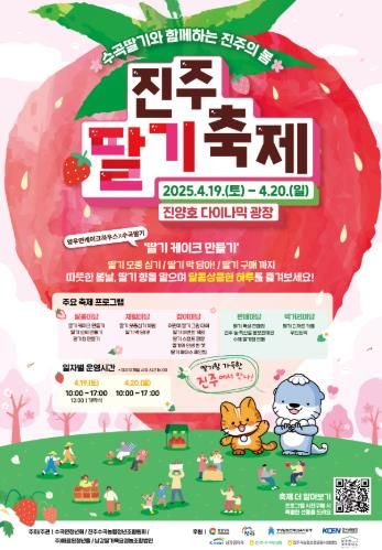 한도용 축제추진위원장은 “갑작스러운 일정 변경에도 불구하고 시민 여러분의 응원과 도움 덕분에 축제를 이어갈 수 있게 됐다”며 “대한민국 최고 품질을 자랑하는 진주 수곡딸기를 맛보고 체험할 수 있는 기회이자, 산불 피해로 어려움을 겪는 이웃 지역에 따뜻한 위로와 응원의 메시지를 전하는 자리가 되기를 바란다”고 말했다.