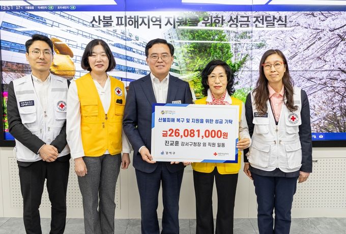 진교훈 구청장은 “강서구민과 지역사회가 한마음으로 모금한 성금이 산불 피해 복구에 작게나마 도움이 되길 바란다”며 “산불 피해 복구가 조속히 진행되고 이재민들이 하루빨리 일상으로 돌아갈 수 있기를 간절히 기원한다”고 말했다.