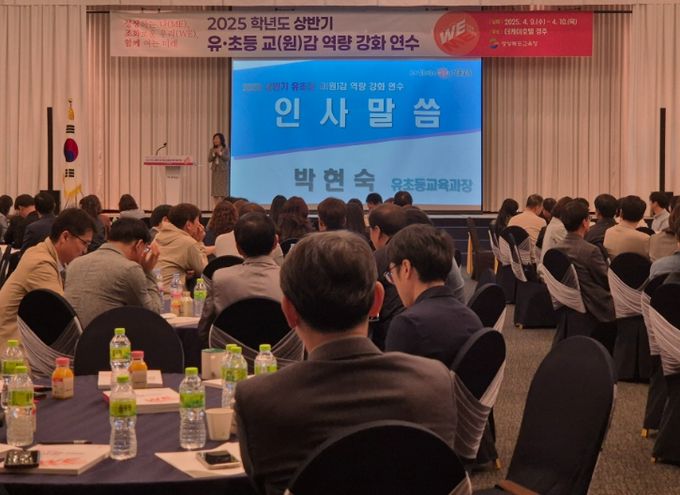 [경남도민뉴스=오창경 기자] 경북교육청은 9일부터 10일까지 이틀간 경주시에 있는 더케이호텔 경주에서 도내 유・초등 교(원)감 450여 명을 대상으로 ‘2025학년도 유・초등 교(원)감 역량 강화 연수’를 개최했다고 밝혔다.