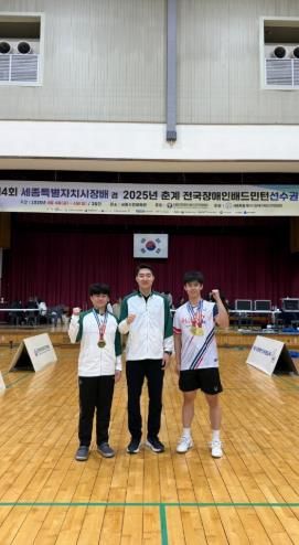 [경남도민뉴스=최민숙 기자] 김천시청 배드민턴단의 서명수 선수, 윤종현 선수가 지난 4월 4일부터 6일까지 3일간 세종시민체육관에서 펼쳐진 '제4회 세종시장배 겸 춘계 전국장애인배드민턴대회'에서 DB(농아인)남성부문 단식과 복식에서 금메달 2개를 차지했다.