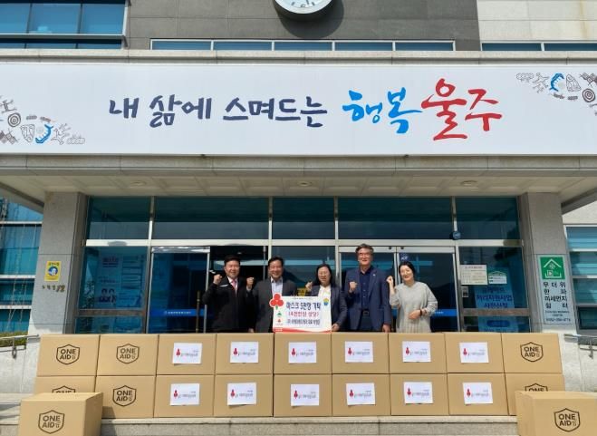 [경남도민뉴스=최재경 기자] ㈜비케이메디케어가 10일 울주군 웅촌면 행정복지센터를 방문해 관내 복지시설 및 저소득 취약계층을 위해 마스크 5만장(4천만원 상당)을 기탁했다.