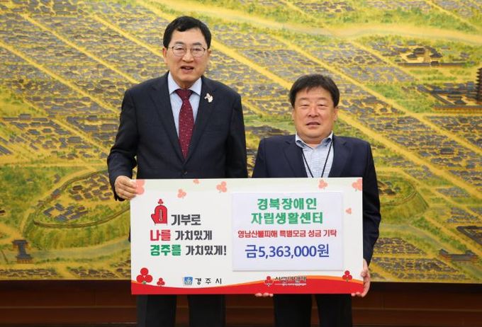 주낙영 경주시장은 “많은 분들이 어려움을 공감해주시고, 나눔을 실천해주신 박귀룡 센터장님을 비롯한 경북장애인자립생활센터 모든 분들께 감사의 말씀을 전한다. 보내주신 성금은 피해 지역 주민들의 빠른 일상 복귀를 돕는 데 사용될 것”이라고 말했다.