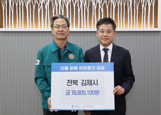 정성주 김제시장은 “산불로 인해 어려움을 겪고 있는 영양군 주민들에게 조금이나마 도움이 되고자 기부를 결정했다.”라며, “앞으로도 지역 간의 거리와는 관계없이 우리 이웃을 돕는 따뜻한 마음을 지속적으로 실천하겠다.”라고 전했다.