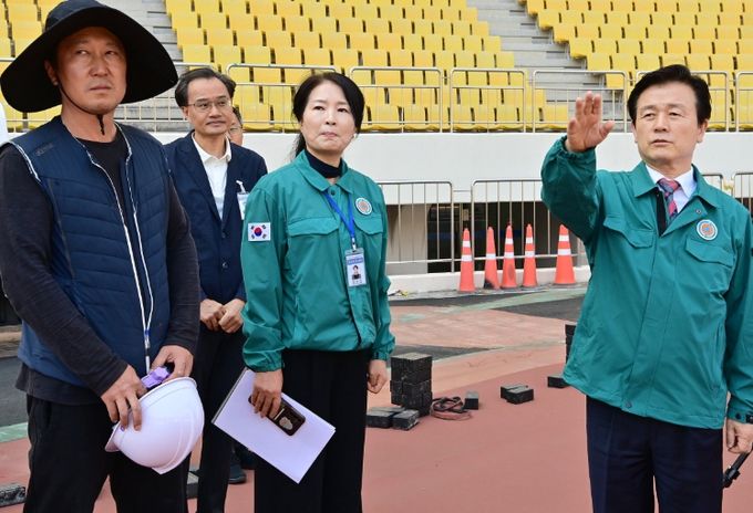 이날 현장 점검에서는 개회식 및 육상, 롤러 종목 등이 펼쳐지는 진주종합경기장과 파크골프 종목이 진행될 송백파크골프장의 전반적인 경기장 상태와 부대시설 등을 중점 점검했다.
