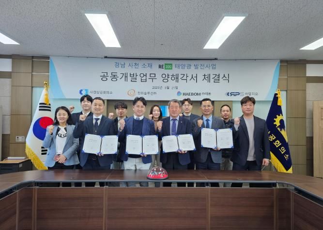 [경남도민뉴스=변정형 기자] 사천상공회의소는 지난달 21일 한화솔루션(주), ㈜해봄, ㈜알피오와 ‘회원사 RE100 지원을 위한 업무협약’을 체결했다고 10일 밝혔다.