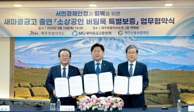 [경남도민뉴스=하형수 기자] 제주특별자치도가 새마을금고중앙회, 제주신용보증재단과 손잡고 도내 소상공인을 위한 150억 원 규모의 특별보증 지원에 나선다.