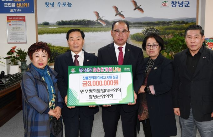 [경남도민뉴스=김병현 기자] 창녕군은 지난 10일, 민주평화통일자문회의 창녕군협의회(협의회장 박해정)가 산불 진화 과정에서 안타깝게 순직한 희생자들의 유가족을 돕기 위해 성금 300만 원을 기탁했다고 밝혔다.