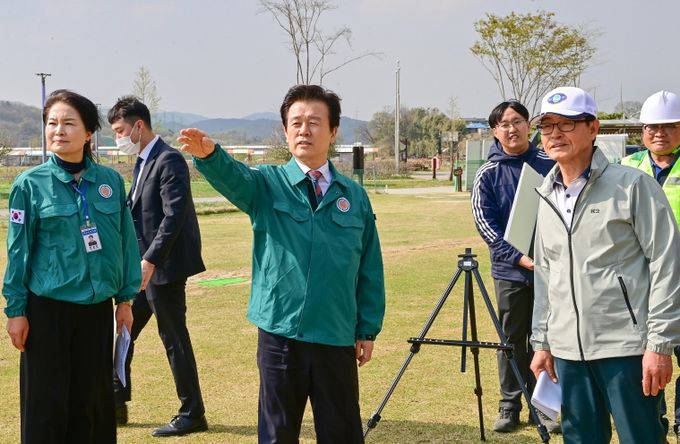 조규일 진주시장은 10일 금산면에 위치한 ‘송백파크골프장 야간조명 설치공사’ 현장을 방문하여 관계자들을 격려하고 공사현장을 점검했다.