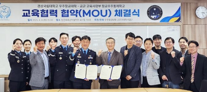 [경남도민뉴스=권중환 기자] 경상국립대학교 우주항공대학은 4월 8일 오후 우주항공대학 항공우주산학협력관에서 공군교육사령부 항공우주통제학교와 우주분야 교육 협력을 위한 업무협약을 체결했다.