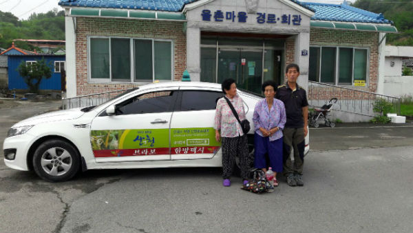 ‘브라보 한방택시’를 이용하는 주민들은 각 마을로 기 배부된 이용권과 함께 1회에 1000원의 요금만 내면 된다.