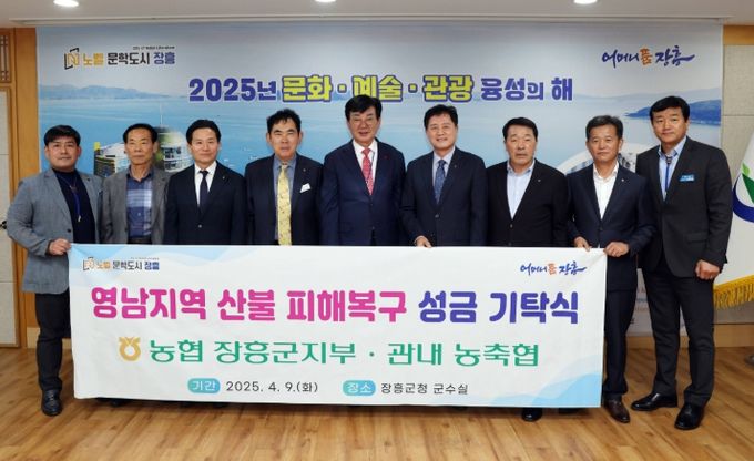 [경남도민뉴스=최인태 기자] NH농협 장흥군지부, 지역 농축협이 영남지역(청송·의성) 산불 피해로 어려움을 겪는 이재민들을 위해 성금 1,200만원을 장흥군에 기탁했다.