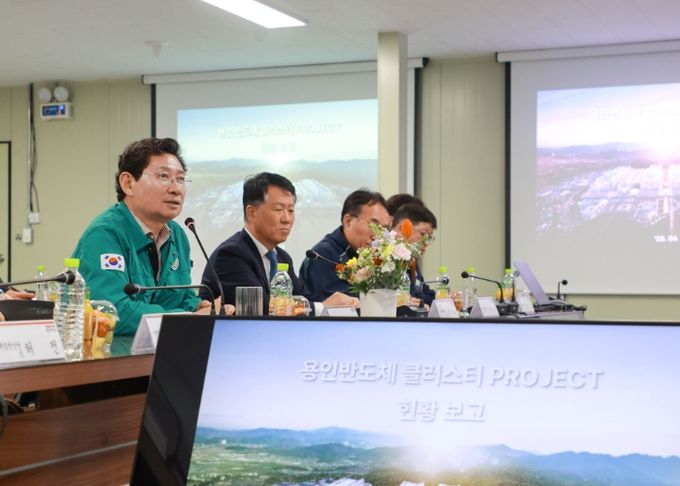 이날 현장점검에는 이상일 시장을 비롯해 김정일 SK하이닉스 대외협력담당 부사장과 오동호 SK에코플랜트 대표, 박정호 용인일반산업단지 대표 등 ‘용인 반도체클러스터 일반산업단지’ 관계자들이 참석했다.