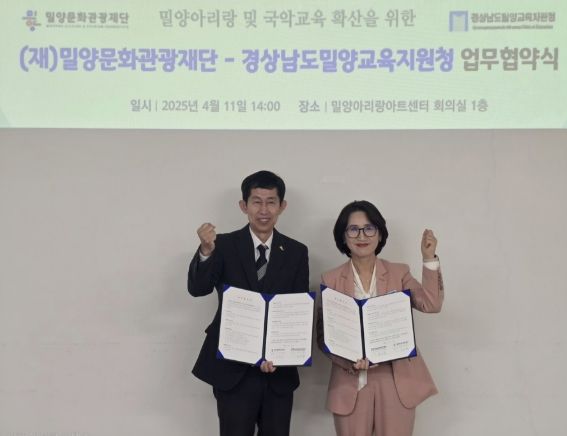 이번 협약으로 재단과 밀양교육지원청은 밀양아리랑 등 전통문화를 교육에 접목하고, 국악 중심의 문화교육을 확대해 지역 문화와 교육이 함께 성장할 수 있는 기반을 마련해 나갈 계획이다.