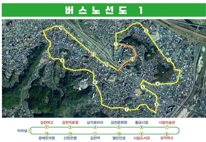 김천시 일반산업단지를 가로지르는 공단순환 버스노선(터미널-탑웨딩-유니투스-피엔텔-계양정밀-한길산업-아주스틸-미래인더스트리-영진화학-계양정밀-탑웨딩-터미널)을 도입하여 근로자들의 출퇴근 시간 단축 및 물류 효율성 강화한다.