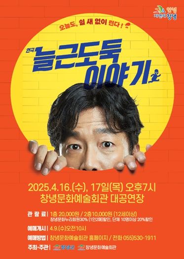 [경남도민뉴스=김병현 기자] 창녕군은 창녕문화예술회관에서 오는 16일과 17일 양일간 연극 ‘늘근도둑 이야기’를 선보인다고 밝혔다.