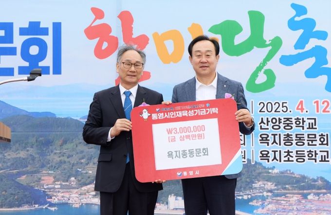 [경남도민뉴스=김부경 기자] 통영시 욕지총동문회(회장 강대용, 46기)는 지난 12일 산양중학교에서 500여명의 동문들과 내빈들이 참석한 가운데 2025 욕지총동문한마음축제를 개최하고 동문의 마음을 모아 통영시에 인재육성기금 300만원을 기탁했다.