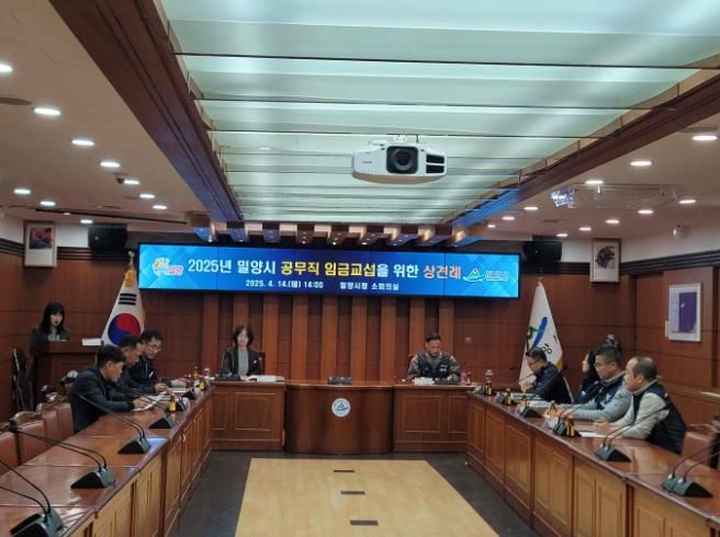 [경남도민뉴스=나희준 기자] 밀양시는 14일 시청 소회의실에서 밀양시 공무직 노동조합과 2025년도 임금협상을 위한 상견례를 개최하며 본격적인 교섭에 들어갔다고 밝혔다.