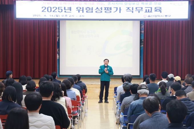 [경남도민뉴스=최재경 기자] 울산 동구는 4월 14일 오후 2시 대강당에서 위험성 평가 담당자 및 근로자 대표, 도급용역 위탁 사업자 등 300여 명을 대상으로 위험성 평가 사전 직무 교육을 했다.