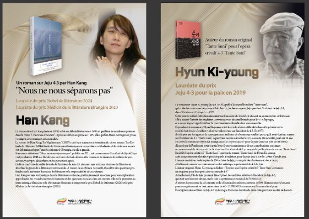 4‧3창작오페라 '순이삼촌'의 원작 소설을 쓴 현기영 작가와 노벨문학상(2024년) 및 한국 작가로 첫 프랑스 메디치상(2023년)을 수상한 한강 작가 소개 현수막을 게시하고, ‘한눈에 보는 4‧3(불어)’과 동백 뱃지를 나눠줄 계획이다.