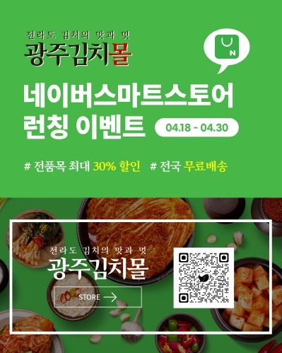 소비자는 네이버 검색창에 ‘광주김치몰’을 입력하거나 정보무늬(QR코드)로 바로 접속할 수 있다. 기존 운영 중인 광주김치몰 누리집에서도 할인행사를 동시 진행하지만, 판매정책에 따라 일부 가격 차이가 발생할 수 있다.