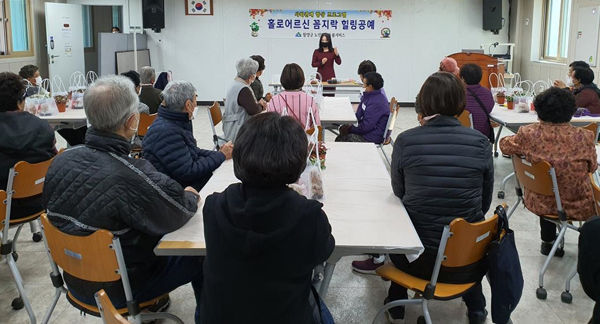 [경남도민뉴스] 함양군 노인맞춤돌봄서비스는 11월 한달간 매주 목요일 23명의 독거어르신이 참가하여 어르신의 실생활에 필요하고 직접 만들기 쉬운 소재의 공예품을 만드는 ‘홀로어르신 꼼지락 힐링공예’ 프로그램을 진행하고 있다.