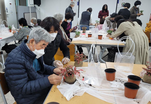 최근 진행된 ‘내 모습 토피어리 만들기’ 프로그램에 참가한 어르신은 누군가와 함께 오랜만에 소통하며 만들기를 하는 즐거움에 큰 만족감을 나타내셨다.