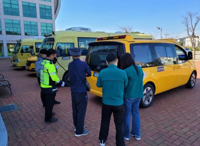 주요 점검사항은 어린이통학버스 신고여부 및 교통안전교육 이수, 종합보험가입 여부, 하차확인장치 및 안전띠 결함여부, 어린이보호표지 탈부착여부, 안전운행기록 제출여부 등을 확인했다.