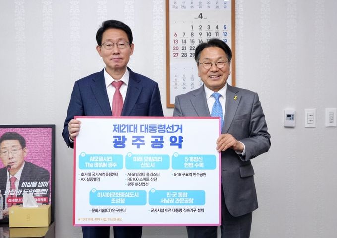 강 시장은 이날 더불어민주당 진성준 정책위의장, 국민의힘 김상훈 정책위의장을 각각 만나 광주시 대선공약인 ‘광주의 제안’을 전달하고, AI모델시티 등 핵심 프로젝트를 적극 반영해줄 것을 제안했다. 다음날인 17일에는 조국혁신당, 진보당 등을 잇따라 면담하고 협력을 구할 계획이다.