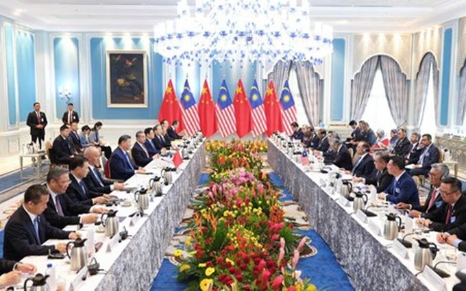 [경남도민뉴스=백형찬 기자] (말레이시아 푸트라자야=신화통신) 시진핑(習近平) 중국 국가주석이 16일 오후(현지시간) 안와르 이브라힘 말레이시아 총리와 푸트라자야 총리관저에서 회담을 진행했다.