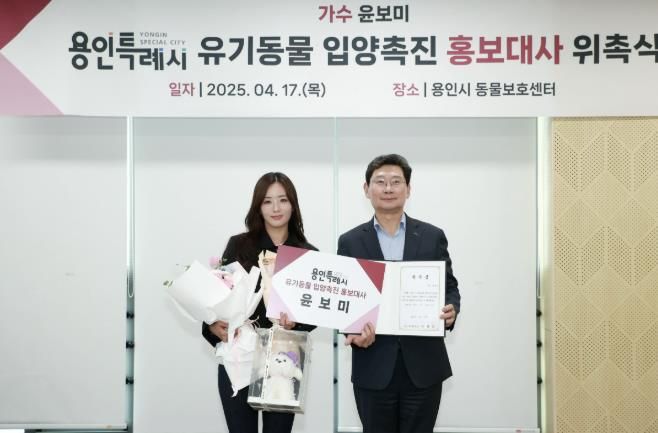 윤 씨는 이날부터 2027년 4월16일까지 홍보대사로 활동하며 반려동물 축제나 각종 행사에 참석해 유기동물 입양 촉진 홍보에 나서게 된다.