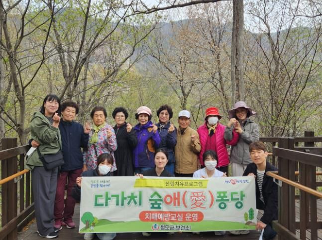 [경남도민뉴스=최민숙 기자] 청도군치매안심센터는 4월 17일부터 총 4회에 걸쳐 국립운문산자연휴양림에서 치매어르신과 가족을 대상으로 산림치유와 치매예방을 접목한 찾아가는 산림교육을 운영한다.