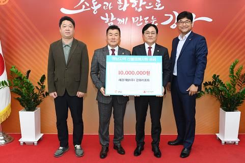해강개발 임종수 대표이사는 “예상치 못한 산불로 삶의 터전을 잃으신 분들에게 작은 위로나마 전해지길 바란다”며 “앞으로도 지역과 사회에 기여하는 기업이 되도록 노력하겠다”고 말했다.