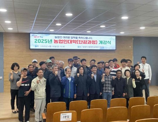 [경남도민뉴스=나희준 기자] 밀양시는 18일 농업교육관 대강당에서 입학생과 관계자 등 50여 명이 참석한 가운데 2025년 농업인대학 입학식을 개최했다고 밝혔다.