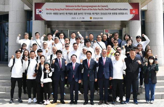 [경남도민뉴스=구인애 기자] 2025 아시아태평양 농아인 축구대회에 참가하는 홍콩 농아인 축구선수단이 4월 21일 경남도의회를 방문하여 농아인 체육과 문화 교류에 대한 의견을 나누고, 경남도의회와 교류의 장을 마련했다.
