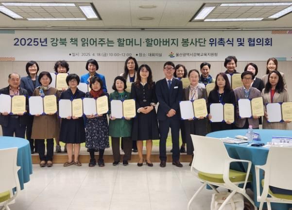 강북교육지원청은 지난 18일 대회의실에서 ‘2025 강북 책 읽어주는 할머니·할아버지 봉사단 위촉식’을 열었다.