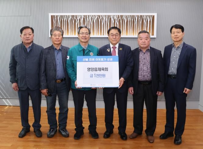 오광욱 영양읍 체육회장은 “역대 최악의 산불로 피해를 입은 이웃들에게 깊은 위로의 말씀을 전하며, 작은 정성이지만 도움이 됐으면 하는 마음으로 함께 뜻을 모아 성금을 전달하게 됐다.”라고 전했다.