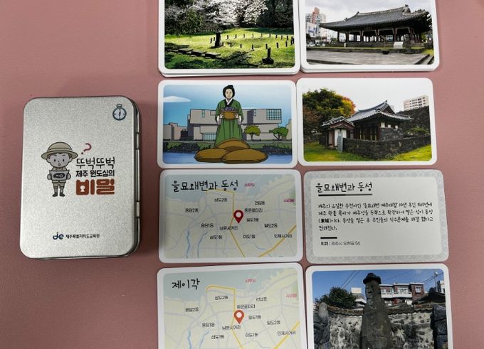 도교육청은 용두암, 오현단, 삼성혈, 관덕정, 김만덕 기념관, 제주목 관아, 제주향교, 제주성지를 병풍형 팝업북으로 제작하고 그 외 제주 유일의 승전사 을묘왜변과 동성, 제이각 등 제주시 원도심 지역의 역사‧문화 해설 카드로 제작했다.
