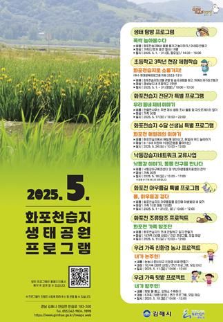 이용규 환경정책과장은 “5월은 가족이 함께하는 시간이 많은 만큼 누구나 자연 속에서 즐겁고 의미 있는 시간을 보낼 수 있도록 다양한 프로그램을 준비했다”며 “자연을 배우고 생태 감수성을 키울 수 있는 좋은 기회가 될 것”이라고 말했다.