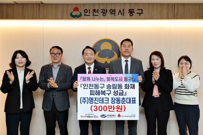 [경남도민뉴스=김용욱 기자] 인천 동구는 ㈜명진테크가 송림동 화재 피해 복구를 위해 성금 300만원을 지난 21일 기탁했다고 밝혔다.