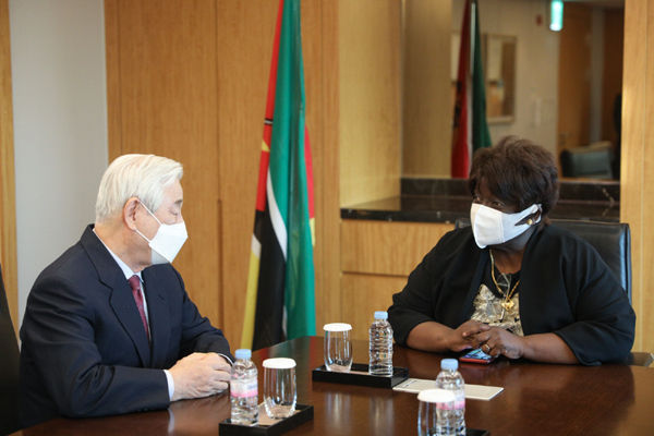 [경남도민뉴스] 모잠비크 영부인 이자우라 곤살루 페라웅 뉴시(Isaura Gonçalo Ferrão Nyusi) 여사가 국제청소년연합(IYF) 설립자 박옥수 목사와 면담하고, 마인드교육 프로그램에 큰 관심을 표명했다.