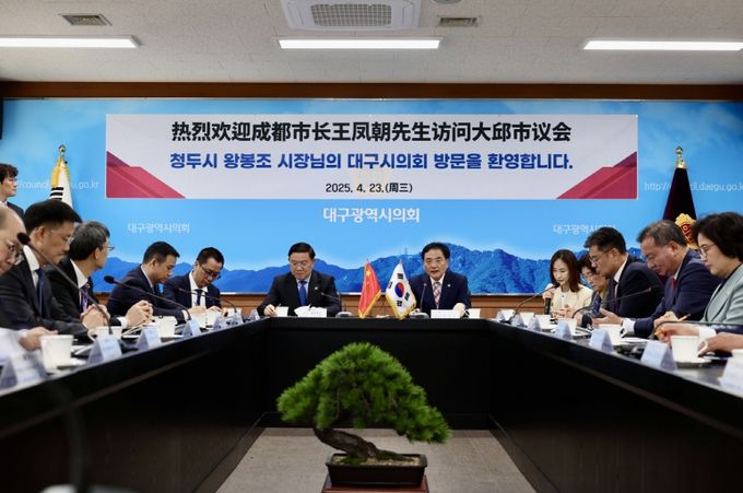 [경남도민뉴스=백상현 기자] 대구광역시의회는 4월 23일 11:30 시의회 2층 회의실에서 中 청두시 시장 일행 환영 간담회를 개최하고, 양 도시의 지속적인 교류 협력을 약속했다.