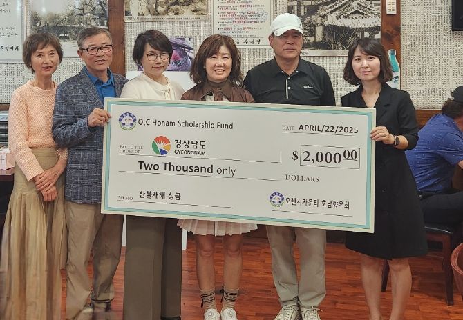 [경남도민뉴스=구인애 기자] 경상남도는 23일 미국 오렌지카운티 호남향우회에서 경남 지역 산불피해 성금 2,000불을 경남사회복지공동모금회에 기부한다고 밝혔다.