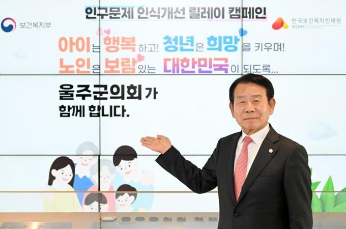 [경남도민뉴스=최재경 기자] 울산 울주군의회 최길영 의장은 23일 저출산·고령화 등 인구문제에 대한 사회적 관심을 높이기 위한 ‘인구문제 인식개선 릴레이 캠페인’에 동참했다.