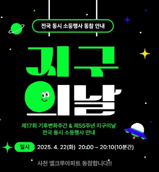 [경남도민뉴스=변정형 기자] 사천시는 55회 지구의 날(4월 22일)을 맞아 탄소중립 생활 실천 확산을 위해 21일부터 25일까지 ‘2025년 기후변화주간’을 운영한다.