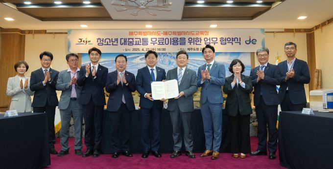 제주도와 제주도교육청은 23일 오후 4시 제주도청 백록홀에서 ‘따뜻하고 행복한 교통·교육복지’ 실현을 위한 청소년 대중교통 무료이용 업무협약을 체결했다.